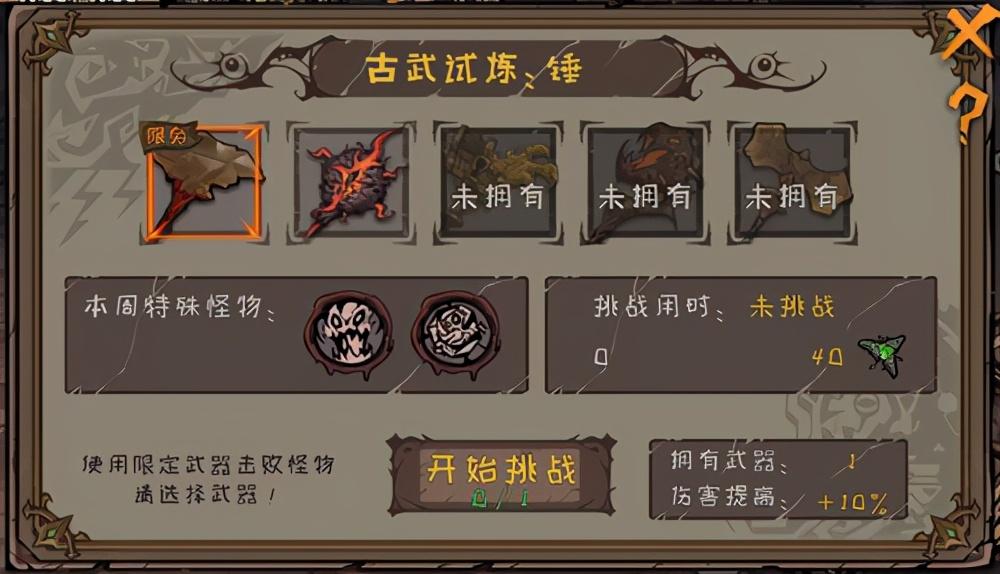 古武试炼中每天需要根据模式限定的武器进行挑战,除了在副本中获得掉落的【猫眼石】以外,胜利后还可以获得【摩刻石】,使用【摩刻石】可以通过“玛蒂尔达”在【虚无砂屋】中兑换“魔核宝箱”、“随机3级宝石”等奖励。