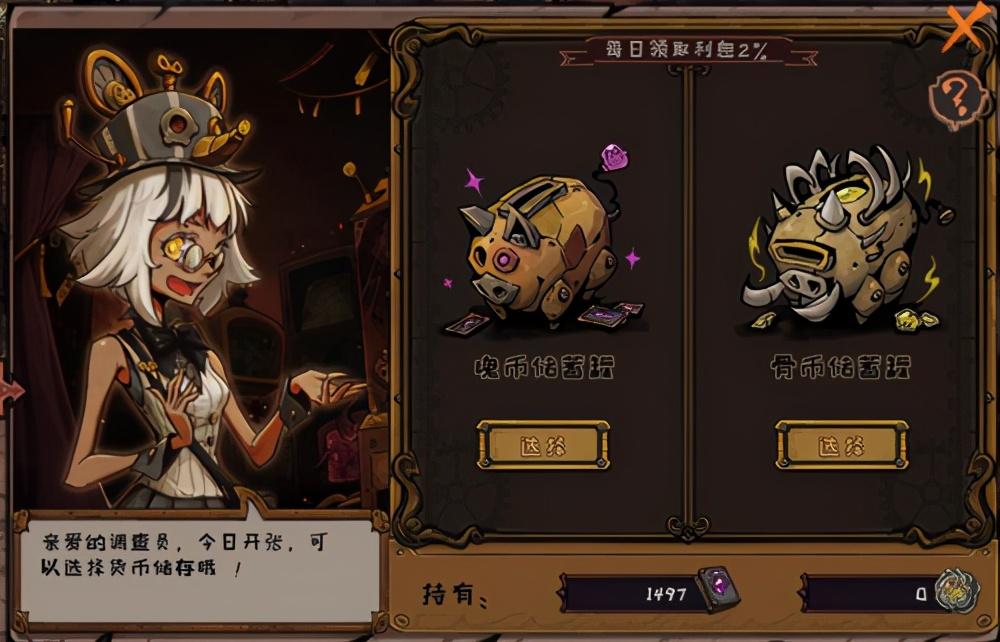在鼠王连锁银行中,可以储蓄魂币与骨币,7天内不可取出,但可以获得额外的每日魂币/骨币收益。