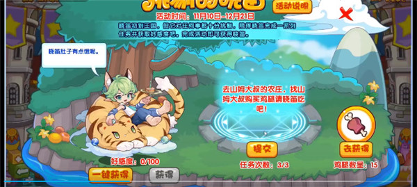 1、活动每天随机刷新任务,根据晓笛的提示做出不同选择可能增加或减少好感度;