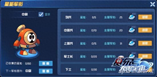《赛尔号:无限宇宙》的军衔分为多个等阶,从最低的列兵、中等兵等开始,往上可升级为下士、中士、上士等等多个军阶,据说赛尔们,军阶最高可升级至元帅!每升级一次军阶,都能获取相应的军阶奖励,军阶越高,奖励越丰富。此外,军衔也是展示玩家实力的标识之一,但如果喜欢低调的玩家不喜欢对外展示,也可对其他玩家隐藏军衔。