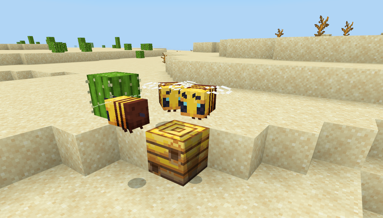 尽管沙漠不会有降雨,但是一旦天气进入雨天,它们就会选择一直留在蜂巢或蜂箱之中,不会外出!如果冒险家们使用指令将天气更改为雨天,它们就会选择立刻回家哦~