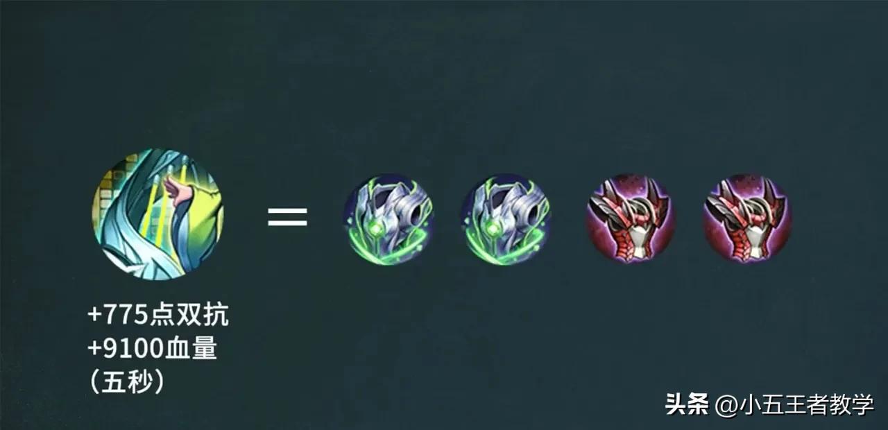 最后再来看看加血效果,一技能3秒内可以给队友加2100的血大招,是只能给一个血量最少的队友,5秒内加9100的血,同时还能加775点的双抗,这是什么概念?就差不多是两件反甲加两件永夜防御敌方是不可能打动的,太离谱了。