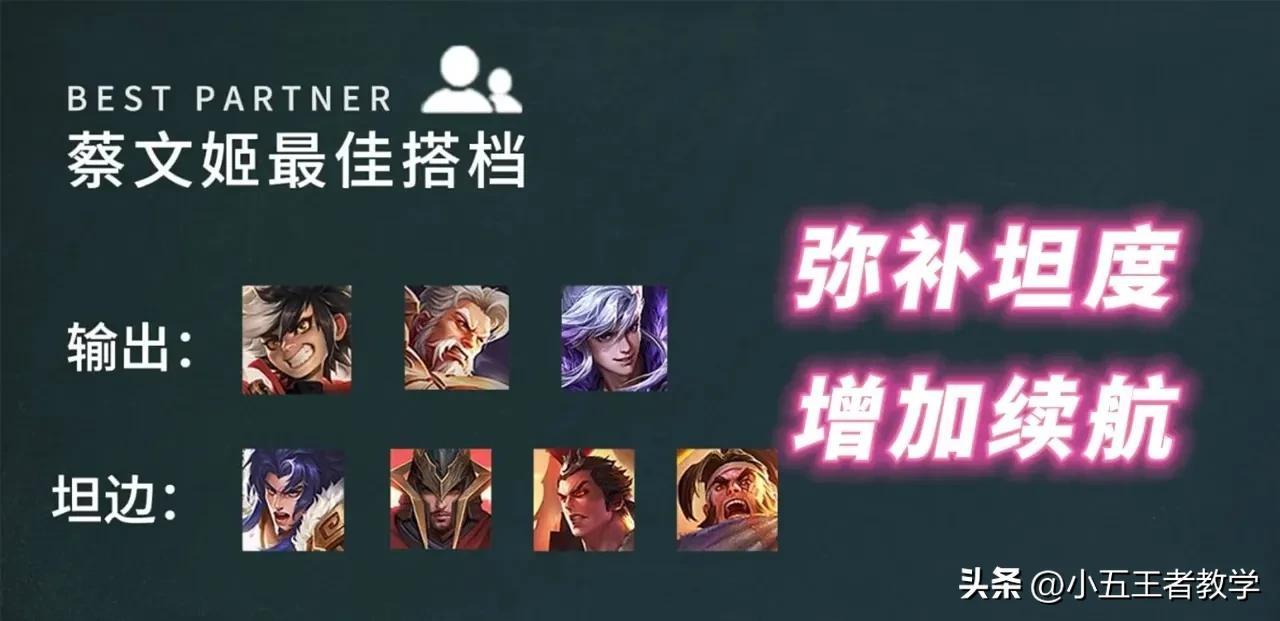 当然你说搭配白起、八戒、程咬金这类坦边不行吗?行,但是为了大局观,我们得想不清楚。这样的话,敌方肯定要出梦魇、制裁了,所以要尽量避免。还有甄姬、干将、鬼谷子之类爆发团控的英雄,蔡文姬也是比较怕的,