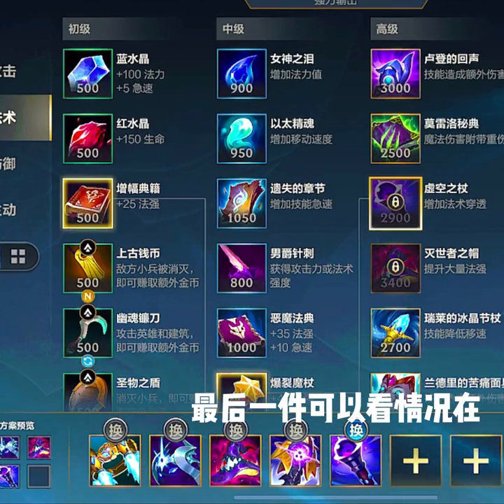 最后一件可根据情况选择,在法暴兵杖和技能急速的作用下,可以选择用水晶反射器等装备。