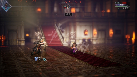 剧情过后进入第一场战斗,两个追赶者弱短剑、剑、斧头、暗属性伤害等。刚好符合斯洛妮三人用的武器、技能伤害类型。将两人打入破防状态后,再来一轮增幅打击基本能够解决他们。