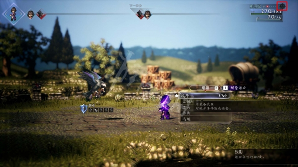 打开门出去再次触发战斗。两个小兵和之前的敌人弱点一样,头目弱斧头和暗属性伤害,优先解决两个小兵。斯基拉奇的【使其掩护】技能可以掩护队友分摊伤害,队友血量不足的话可以用下。