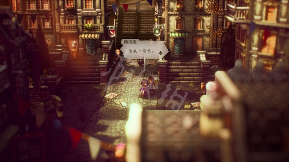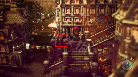 从存档点旁的出口进入新德尔斯塔城区。除了偷窃、探索外,可以去装备店更新调换一些更高级的武器、装备。