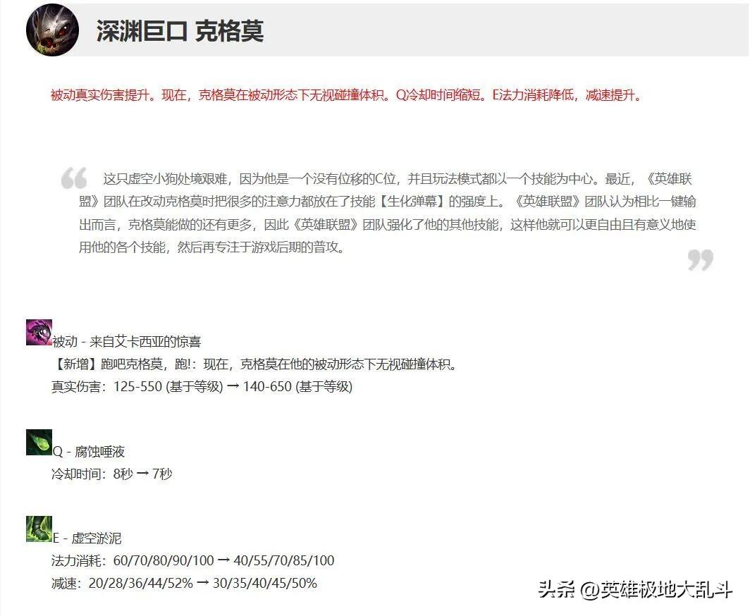 13.8版本还加强了大嘴被动以及QE技能,这样大嘴即使被切死也能凭借被动自爆打出“更多伤害”,保证收掉残血或者清理兵线。