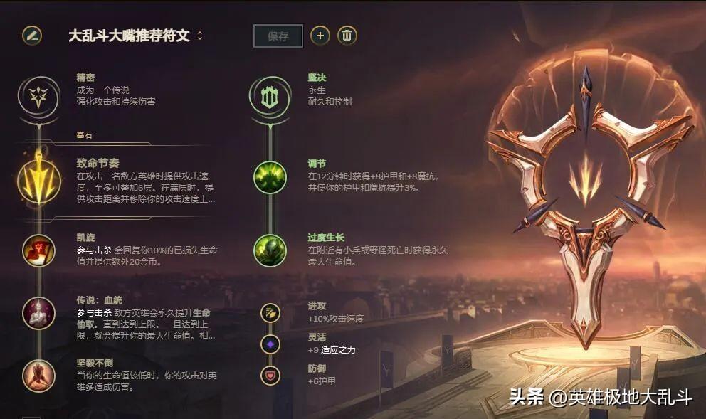 符文解析:吃攻速的英雄都带致命节奏加强持续输出能力。