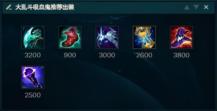 出装解析:大乱斗有雪球进场,不需要火箭腰带,暗夜收割者的爆发伤害更高,且造成伤害加移速和神话被动提供技能急速,这些都是吸血鬼急需的属性。