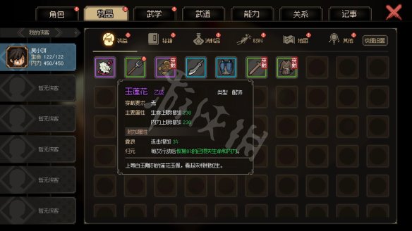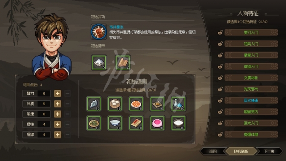 选择初始携带的道具,回复物品、暗器或是礼物等等。