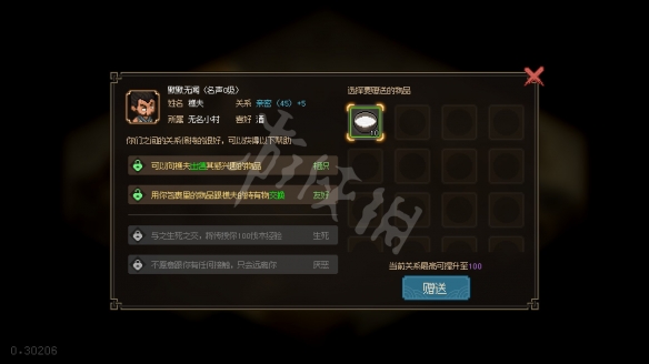 随着关系等级的提升,与角色间进行的交互内容也会越来越多,比如邀请入队、交换物品、出售货物、传授经验等等。