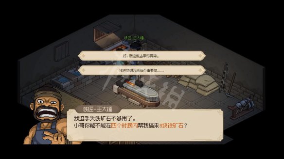 任务比较简单,在四个时辰内收集8块铁矿石即可。
