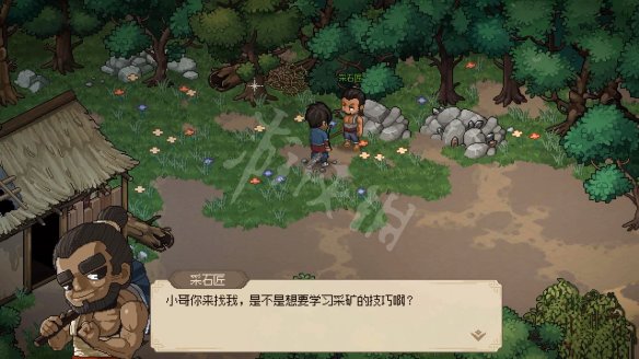 和村北采石匠对话,会学习如果采集资源,并且会获得一把矿镐。