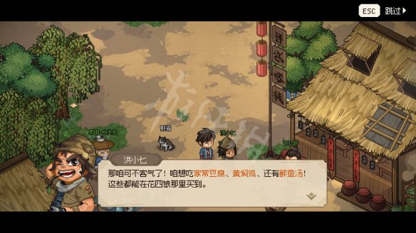 在客栈门口与洪小七对话,他告诉主角想吃、和。