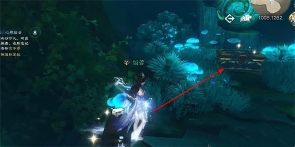 3、完成之后需去往坐标为(1008,1262)的位置,到达之后即可看见一个宝箱;