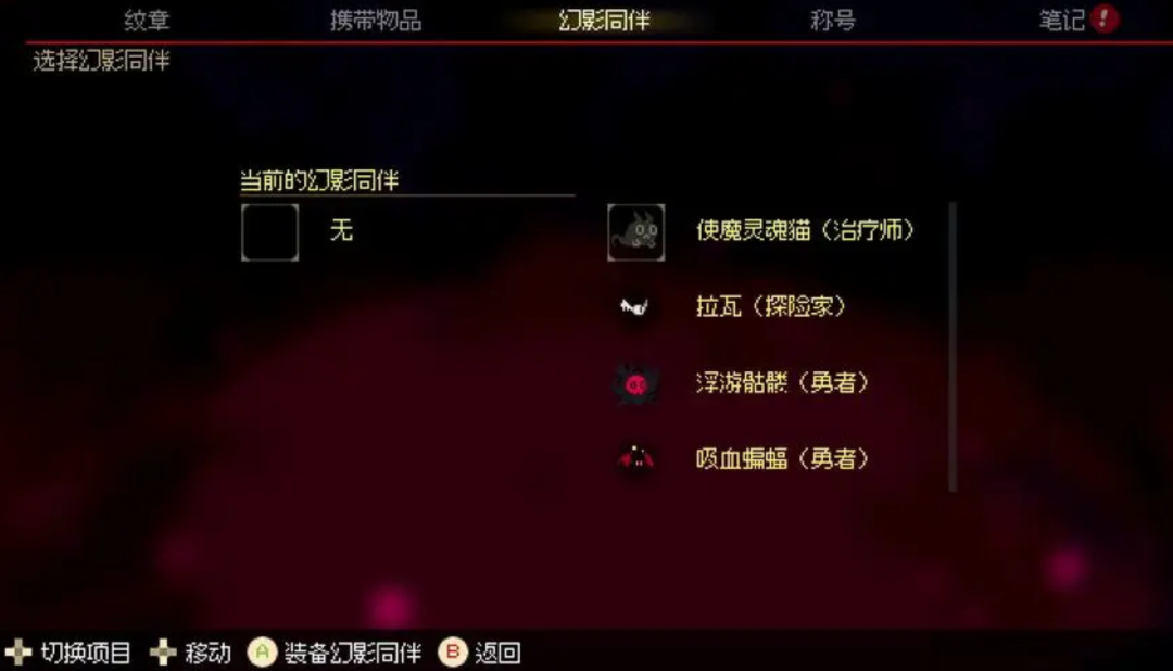 此外幻影同伴的设计也是治愈感的体现,这个幻影同伴其实类似于《恶魔城:月下夜想曲》里面的使魔,但是效果能力却并没有使魔那么强大,比如《恶魔城:月下夜想曲》中的剑魔这个使魔是非常逆天的强大存在。