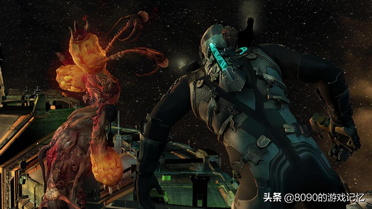 有意思的是,二代作品开始正式扩展与构架《死亡空间》系列的世界观,二代不仅有前传游戏作品任天堂WII平台上的《死亡空间:血统》,还有游戏动画电影《死亡空间:余波》做剧情序章,游戏之初的开篇阶段里玩家在逃亡期间期间会遇到5号病人诺兰·斯特罗斯,而他正是动画电影《死亡空间:余波》中唯一的幸存者。整个游戏与动画互相交织,互相关联,营造出一个庞大诡秘而硬核的科幻恐怖太空克苏鲁世界,而正是这样的世界,非常让人感到着迷,这也是诸多硬核玩家喜欢《死亡空间》系列的原因所在。