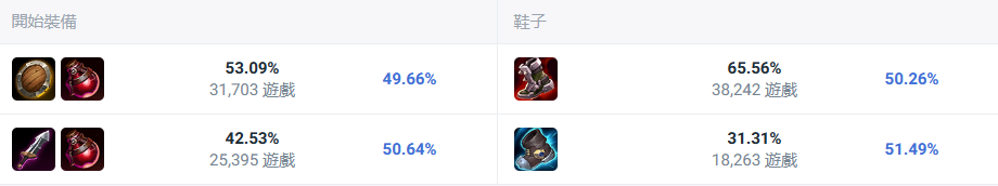 出门装可以选择多蓝盾加药水或者多兰剑加药水。鞋子选择护甲鞋或魔抗鞋