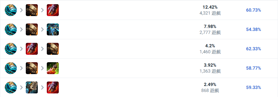 当前版本比较适合诺手的神话装只有挺进破坏者做完挺进破坏者后面如果节奏比较快要打团就做血手死亡之舞自然之力复活甲