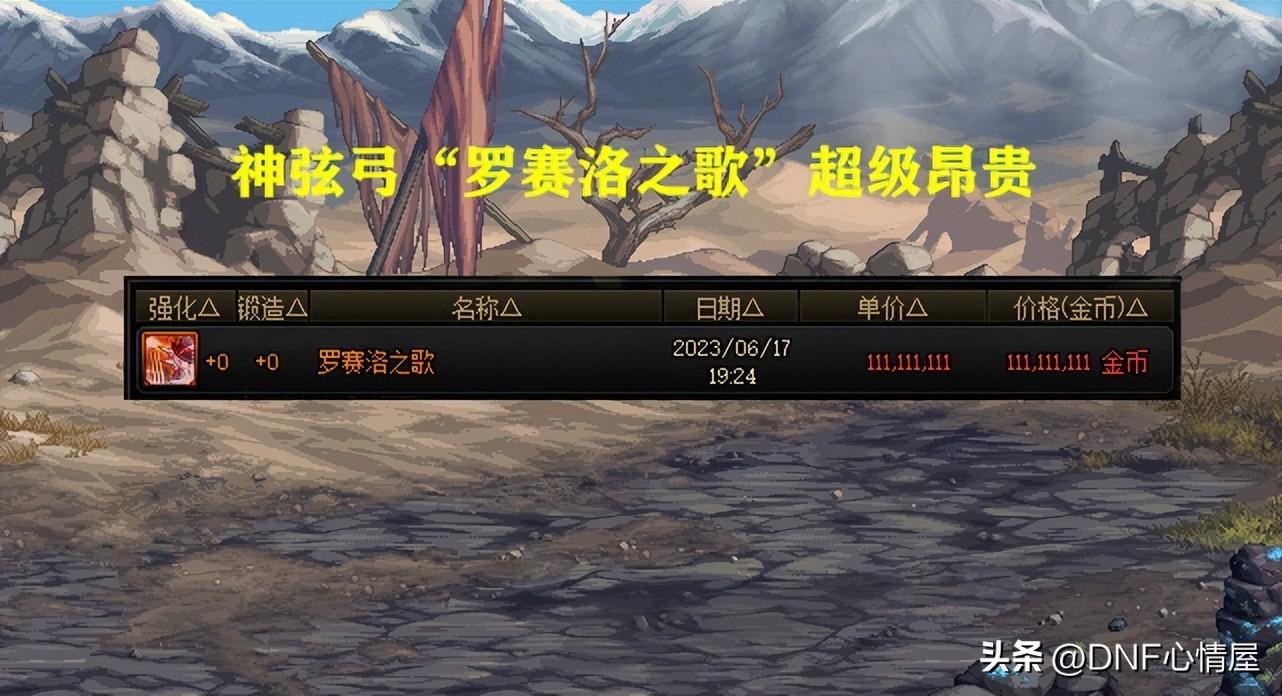 不过从“行情搜索”中,你会发现神弦弓“罗赛洛之歌”,竟然能价值1亿金币!不得不说,DNF游戏中,这群暖暖玩家,是真的舍得啊!仅仅只是一把幻化武器,不对角色提升任何伤害,摆了1亿金币,都毫不眨眼的买下。