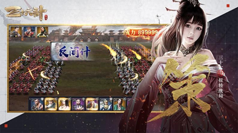 帝王之路异常坎坷,玩家们要经历多重磨难,才能登上宝座。游戏汇集了美女将、知名武将、君王将等,每一位都是背景和实力兼备,劲霸登场。它设计了多重连环计谋,三十六计异常出彩,比如连环计、美人计、反间计等。每场战争情况不同,玩家要做好心理准备,推算天时地利人和,在不同坐标处博弈,批量强化一众兵种,争夺君王尊号。