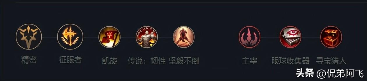 符文主系带征服者、凯旋、坚韧和坚毅不倒,副系带眼球收集者和寻宝猎人