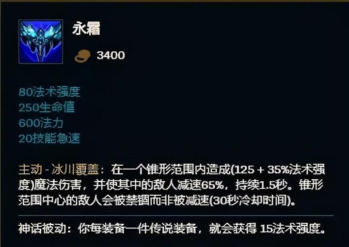 出装解析:永霜帮助狐狸提升E技能命中率,有R技能位移也能让永霜更容易控到敌人。