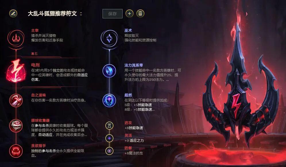 符文解析:电刑提升狐狸的爆发伤害,由于狐狸主玩推线秒人流,消耗人不是很强,电刑加伤害更容易秒脆皮。