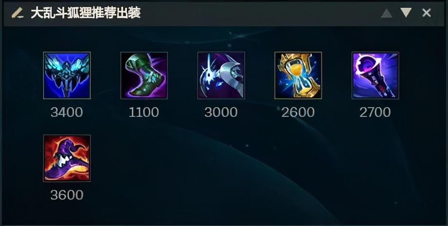 狐狸是一位偏刺客的法师英雄,大招连续位移加上E技能的控制让狐狸在小规模团战中威力十足。不过在大乱斗这种持续5V5团战的地图,狐狸表现出来的影响力只能说是中规中矩,缺乏后续输出是狐狸的硬伤,不管什么出装都会显得狐狸伤害拉跨。与其追求爆发不如退而求其次打出狐狸的功能性,便于新手玩家上手。