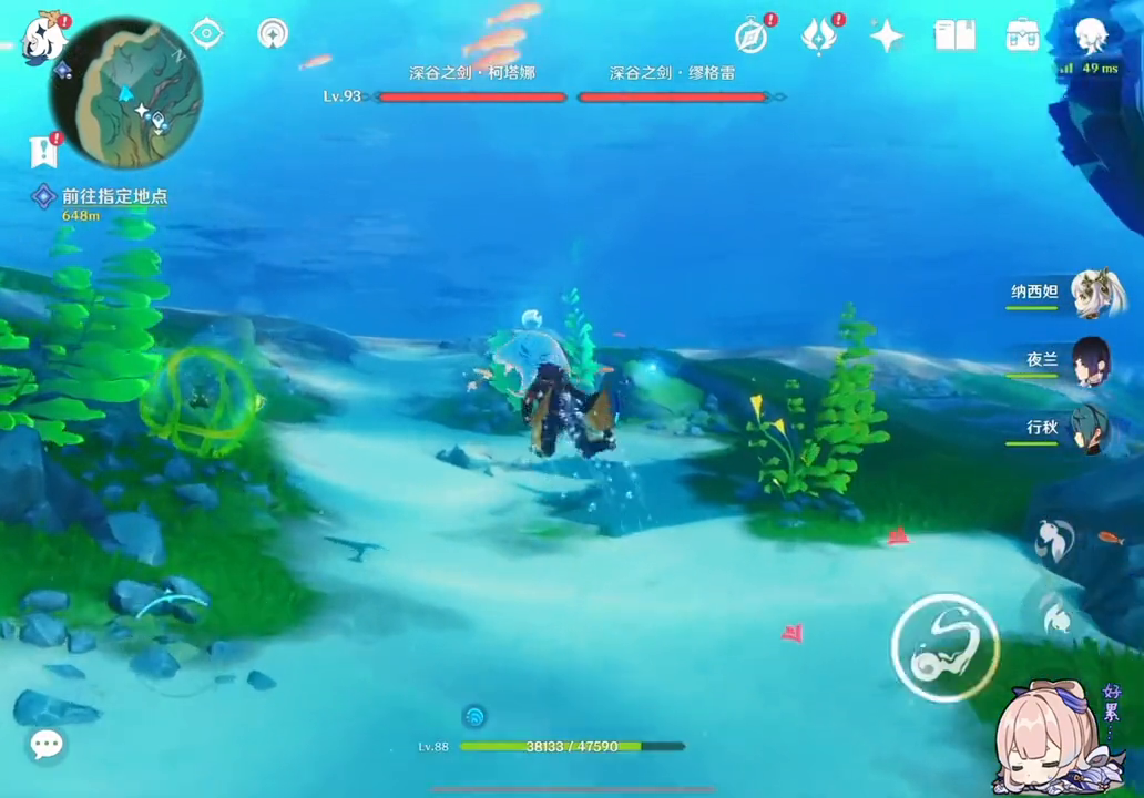·首先,打开地图,前往塔拉塔海谷。接着向地图左上方的后方游去。我们的目标是两个boss和两条紫色的大鱼。我们需要先获得技能,才能快速消灭它们。当我们获得技能后,只需在两个boss之间的连接线上劈一刀,就能迅速消灭它们。