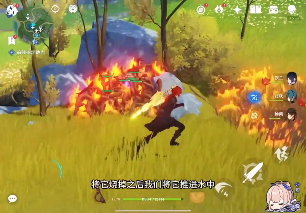 ·完成后,将机关推进水中。接下来,我们需要找到下一个机关。这个机关需要使用一个火属性的角色。将角色转换为火属性,然后将其推进水中。