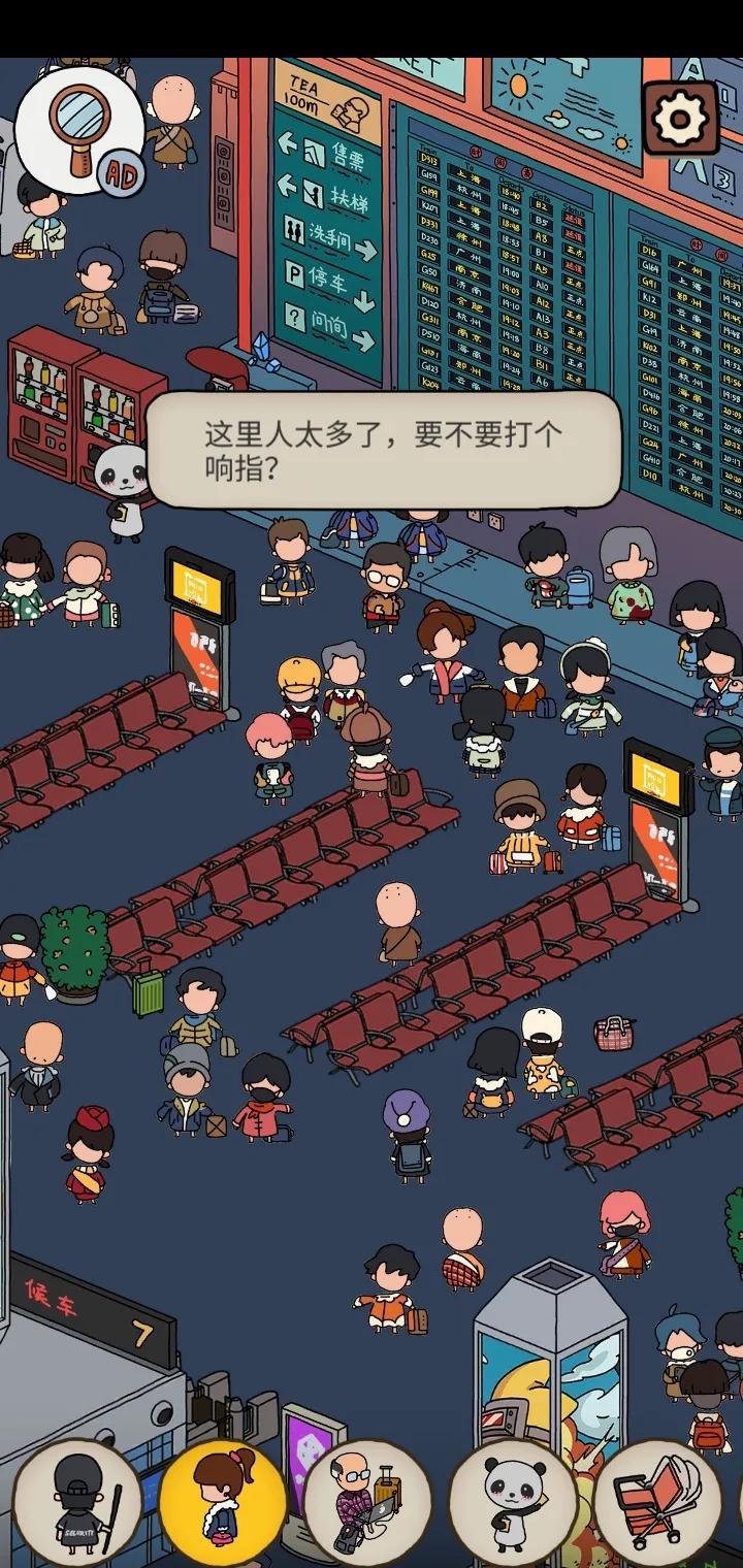 游戏中有的关卡会有这样的设计,比如这一关,当你点中这位“魔术师”,他会打个响指,减少大厅人数,一个小小的surprise!(再点一下可以把人变回来)