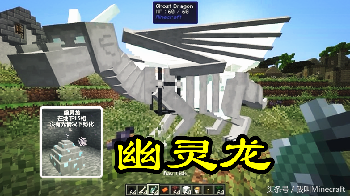 为啥“幽灵龙”作为第一个介绍呢?因为这是小编认为最帅气,名字最酷,也是最为神秘的一条龙。《我的世界》幽灵龙全身为灰白色,玩家可以通过喂鱼使其长大,也可以通过喂鱼来驯服。驯服后放上鞍就可以成为你的坐骑。