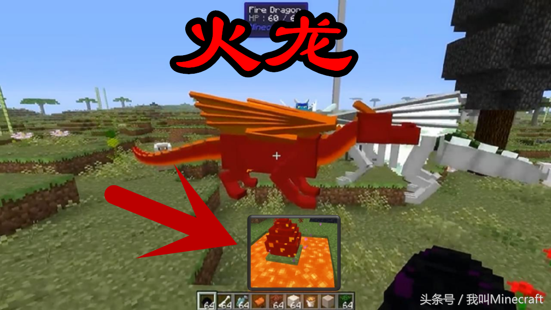 《我的世界》早些时候Notch曾设计出一只红龙,打算与末影龙做伴。但却因为各种原因被搁置了,而在这个第三方模组中,火龙就类似曾经的红龙。玩家只需将龙蛋放置在岩浆之中,即可孵化。只是身负火龙之名,除了身上红一点之外,并无其他特色。
