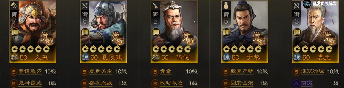这个时期由于不需要考虑国家队,我们从各个阵营中选择比较好用,自己红度高的武将即可。