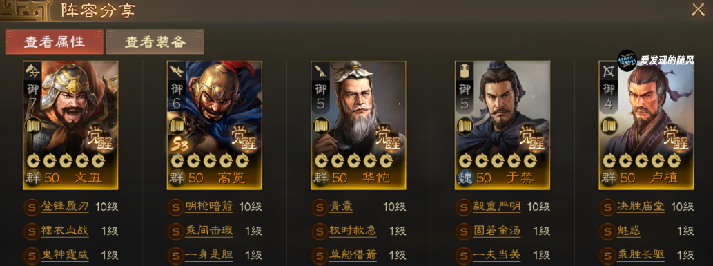 以司马懿和郭嘉为主输出,郭嘉带新战法百步飞剑在司马懿的先手耗血下基本上是一回合稳定带走一个。如果没有这个战法,带智识过人+传檄宣威这样的组合打伤害也是可以的。