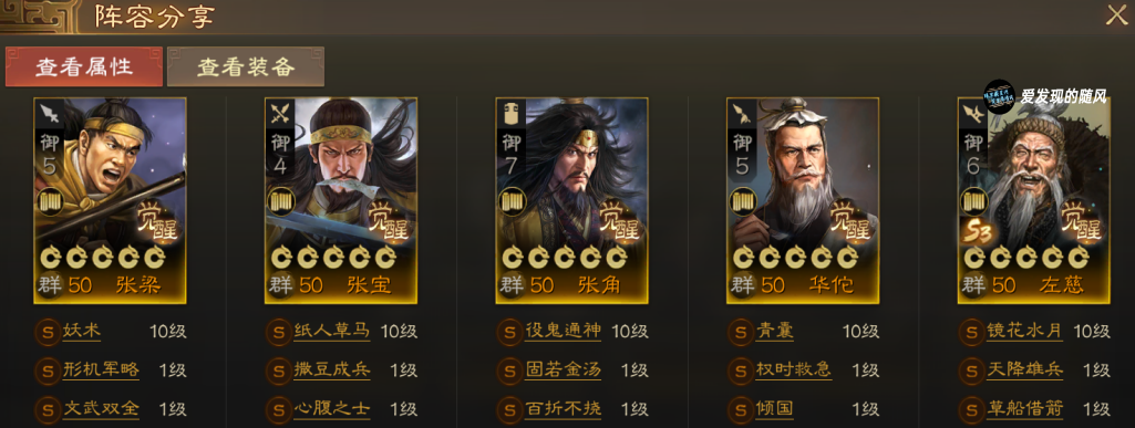 思路是召唤海挡在前面输出,张角援护,张梁点杀,华佗提供被动群体治疗和强力主动治疗,左慈复制对面功能性武将主打一个人多打人少。
