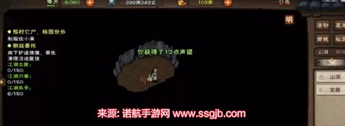 接着前往青城山(坐标6,7):来到草原,进行搜索,找到断木,使用铁锹挖掘(需要准备1把铲子)。一直进行挖掘,直到出现提示”容易”,然后选择”推入水中”,随后漂浮至(坐标2,7)进入洞穴。