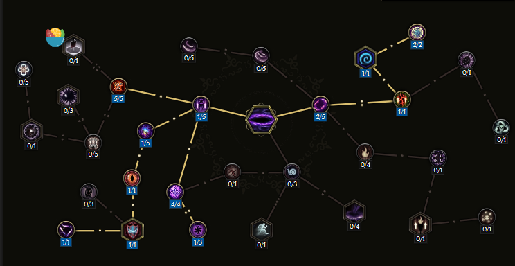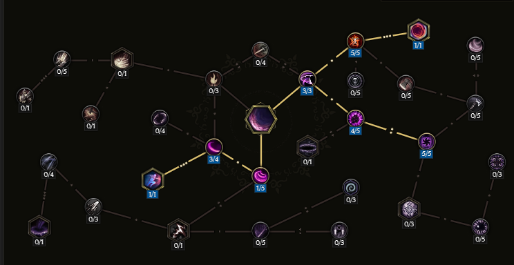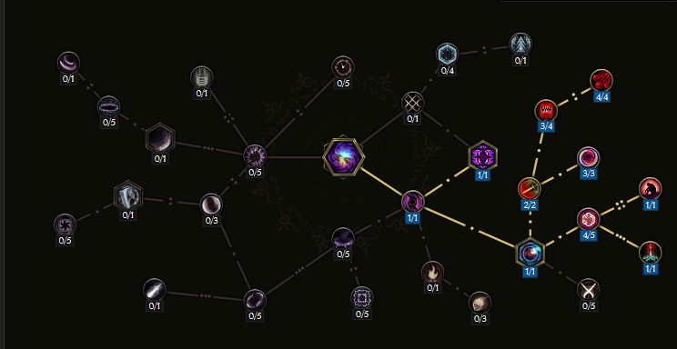 仇敌屠刀可以使伤害和异常几率翻倍,可以很快叠满粉碎护甲的效果。时空战士节点非常好用,可以充分利用仇敌屠刀效果。专注打击作为本 BD 的关键部分,保证我们不需要在武器或装备上叠暴击率,从而去叠攻速等属性。武器专家提供了基于活力的虚空伤害,与虚空骑士固有的虚空伤害协同,因此也可以选择一些活力属性。