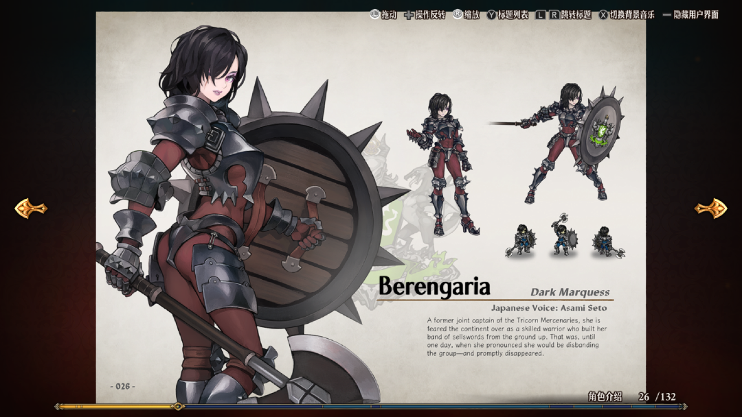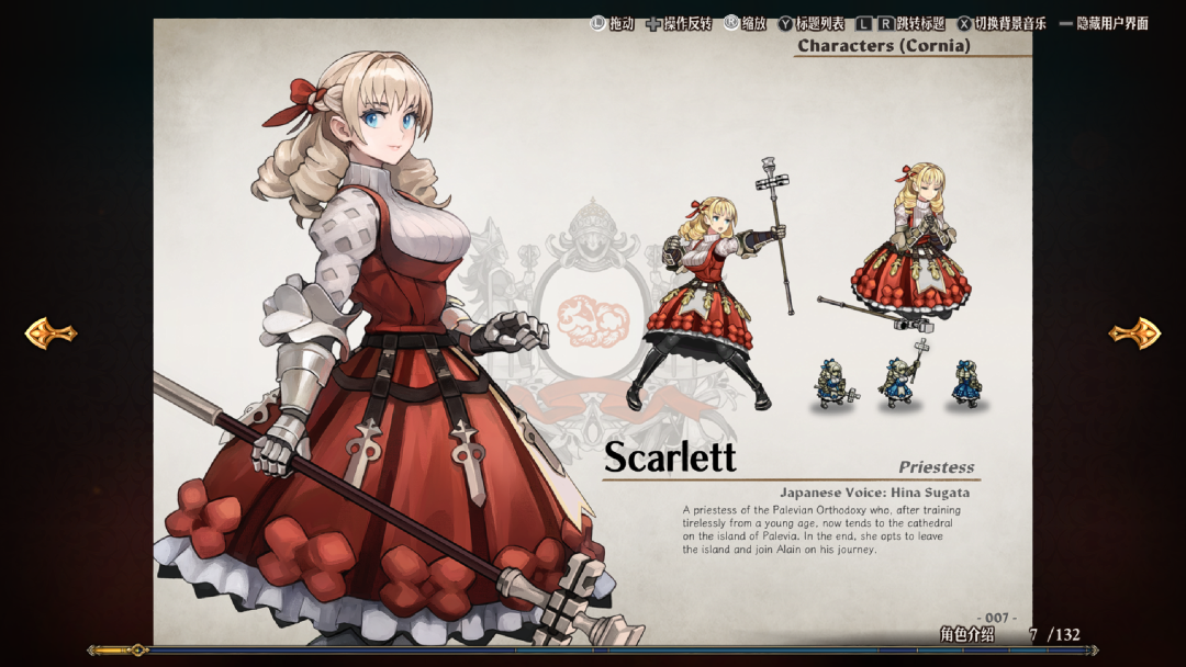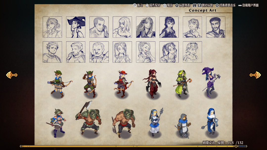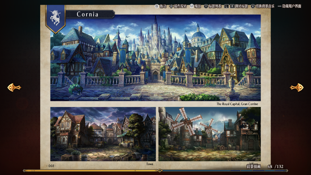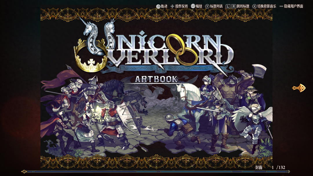 两部分均可用手柄来操作,十字键用来翻页,A键确定,B键取消,X键切换背景音乐,Y键可以打开目录,左右摇杆能够拖动和放缩画面,和游戏操作一脉相承。