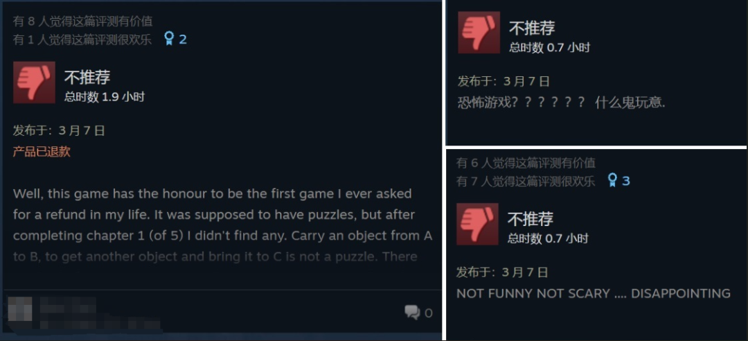 “不够吓人”“机制简单”……这些差评大多集中出现在游戏发售当天