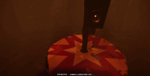 如果只从游戏性来看,解谜空间中的那些谜题无非是最简单的找钥匙、解密码、匹配图案等等,玩家很难从机制中获得“乐趣”。但如果持“故事优先”的视角,会发现解谜空间的交互叙事还颇有巧思。举例来说,在某段铺垫背景性质的回忆叙事中,玩家会来到马戏团场景中的一间逼仄小屋,面前有三道门,视情况不同,门上画有不同的图案或文字。小屋中间则摆着一套突兀的广播设备,会讲出一个背景故事片段。玩家需要凭借此前断断续续拼凑出的故事碎片,找出那道象征着故事正确发展的大门,才能顺利来到下一个广播房间(怎么和前一个看起来一模一样?),聆听下一个故事片段。