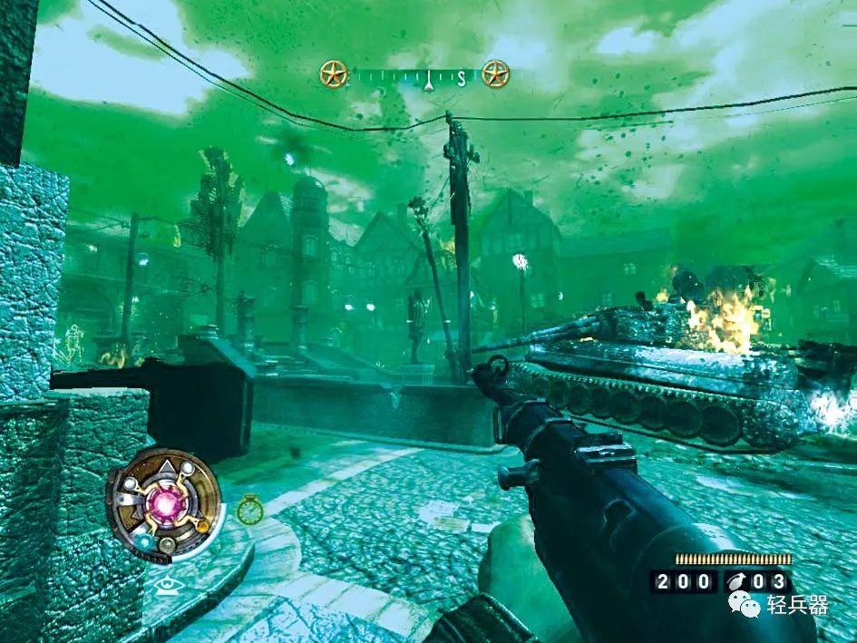 激光兵手持激光枪,威力巨大。飞行兵长有翅膀,飞行在空中,居高临下攻击玩家,威力同样不可小视。喷火兵,顾名思义就是手持火焰喷射器的敌人,游戏中的喷火兵体形巨大,外形类似古代的武士,浑身都披有铁甲,对付起来难度很大。僵尸其实就是受到辐射而变异的人,他们没有武器,仅靠牙齿和爪子杀伤玩家。单个僵尸可以轻易杀死,并不可怕,但僵尸群的威力就另当别论了,只有速射武器才能快速阻挡住他们。隐形人狰狞可怕,他们无形无声,随时都可能出现在玩家身边,只有开启“面纱”时玩家才能看见他们。巨型魔头是德军中高级别的人物,多在游戏后期出现,拥有转管机枪和火箭炮,对付他们时一定要利用掩体进行周旋,正面强攻的话玩家撑不了多久。此外游戏中还经常出现一种低级别的人物——魔法师。魔法师会使用火球攻击玩家,同时还会使用魔法在德军身边形成一道防弹屏障以保护德军。但魔法师很容易被杀死,对玩家不会构成太大的威胁。