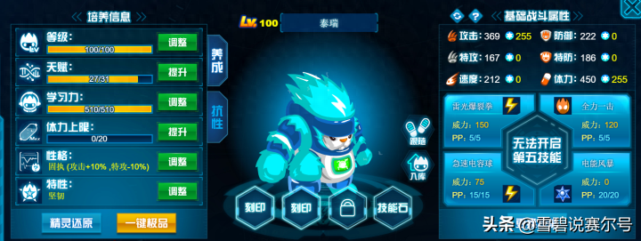 技能组联动性也是很强的,开局直接就是+2的本攻强化,然后再加持一个【电能风暴】的两回合暴击,只要是处于微弱或者克制情况下优先级开出属性,150雷光爆裂拳实实在在到肉。比起脆皮雷伊,说实话是真心好用,雷伊在当时的脆也是出了名的。