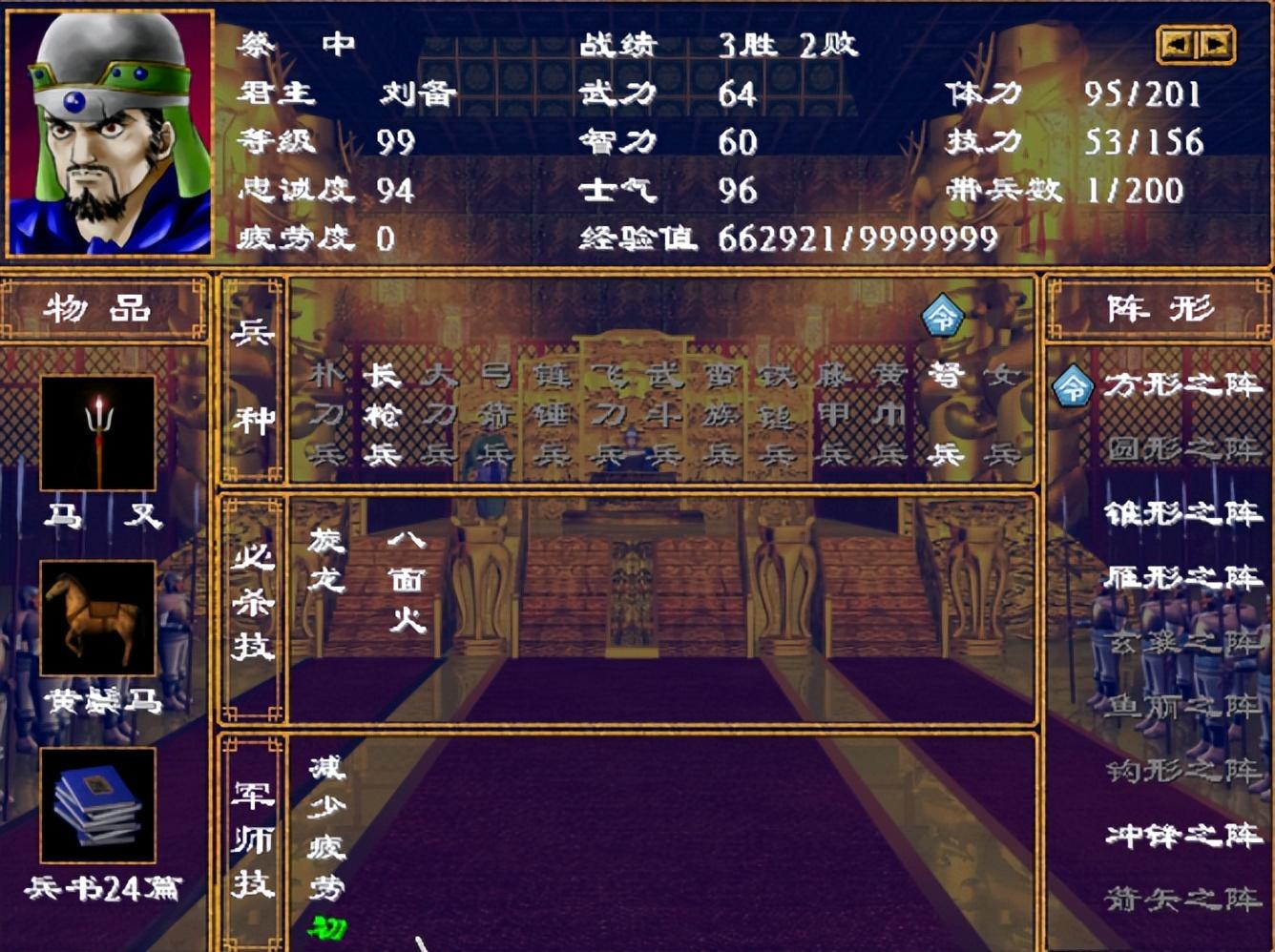 蔡中学会八面火的时候已经22级了,再加上他那可怜的56点武力和42点智力,守城我都嫌他多余,更何况冲着顶绿帽子我也得先砍了他。