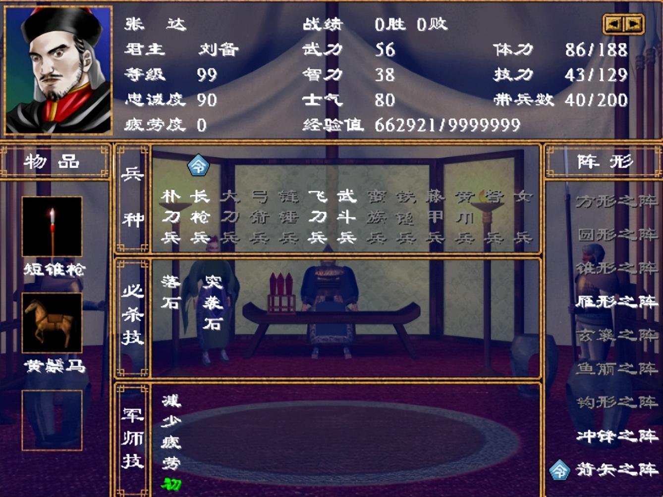 除了武将技不如范疆外,张达在出场自带兵种上也差了许多,群英2种的长枪兵虽然看起来很帅,但武力较弱的武将带这个兵种几乎就是送死,而范疆自带的弓箭兵用起来就顺手多了,特别是打守城战的时候,范疆偶尔也能发挥出奇兵的作用。因此这两位要是只能留一个的话,张达死的是一点也不冤枉。