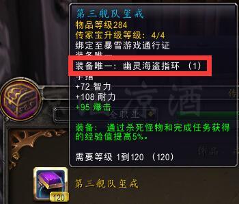 戒指1和戒指2即分别是要塞获取的“幽灵海盗”和钓鱼比赛的“海狼戒指”,幽灵海盗戒指有智力、力量、敏捷三个,但是因为幽灵海盗唯一,所以即使你三个都有也只能同时装备一个,而钓鱼比赛戒指可以和幽灵海盗同时装备,但是拥有的人更少。