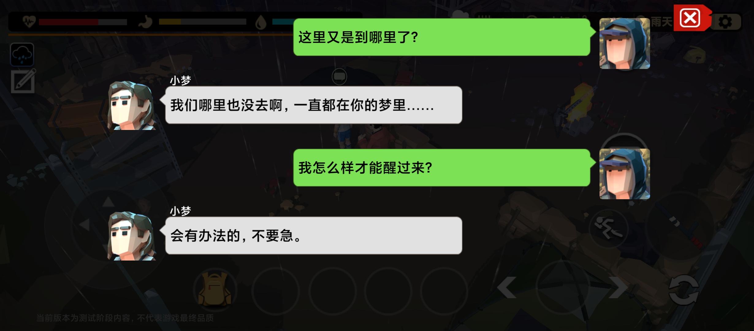 故事模式部分以“我”的梦境为切入点展开剧情叙述,虽然处理比较生硬(这部分正式版上线应该会有所补充),但咱们是来做求生演练的(认真),这点并不重要哈。