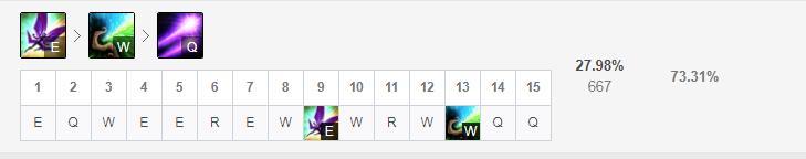 璐璐的技能加点遵循:主E副W,有R点R的原则。E技能是璐璐的主要伤害技能,同时也是限制敌人输出的核心技能。W技能可为自己或者己方队友提供一个短时间的移速加成。Q技能可通过利用小兵作桥梁进而辐射到敌方英雄身上,造成伤害。